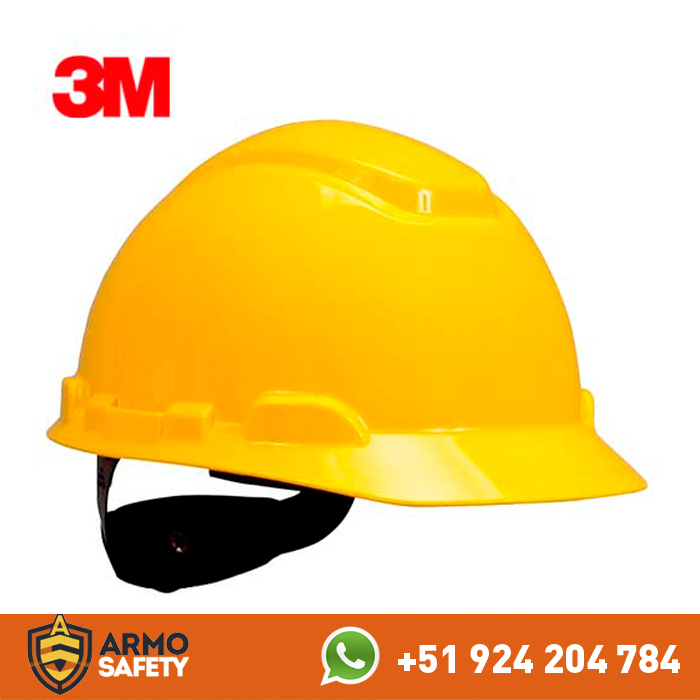 Casco de seguridad tipo I de la marca 3M para protección craneal contra peligros de impacto. El diseño del casco ofrece mayor comodidad para el usuario. Con portalámparas integrados y cintas reflectivas para trabajos en campos iluminados.