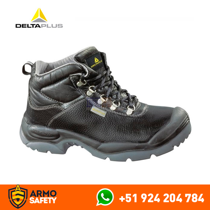 Caña : Piel lisa de búfalo, tratamiento impermeable S3. Forro : Poliéster. Plantilla interior : Amovible preformada - Poliamida sobre EVA con forma anatómica. Suela : Inyectada - PU bi-densidad con puntera envolvente. Calzado no magnético.