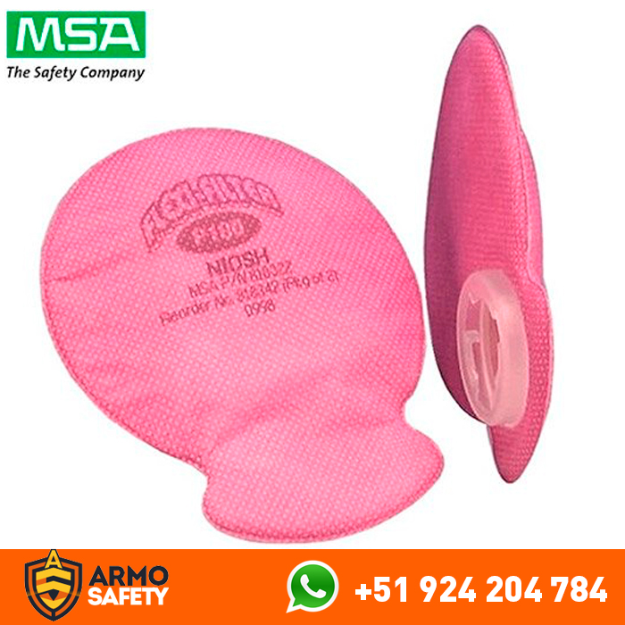 FILTRO FLEXIBLE MSA 818342 P100 , estos filtros flexibles de bajo perfil se ubican bien bajo las pantallas para soldador y otros equipos de protección. Ofrecen un excelente equilibrio y distribución de peso para mantener el buen ajuste del adaptador facial, mientras que su diseño, inclinado hacia atrás, mejora la visión y aumenta la comodidad.