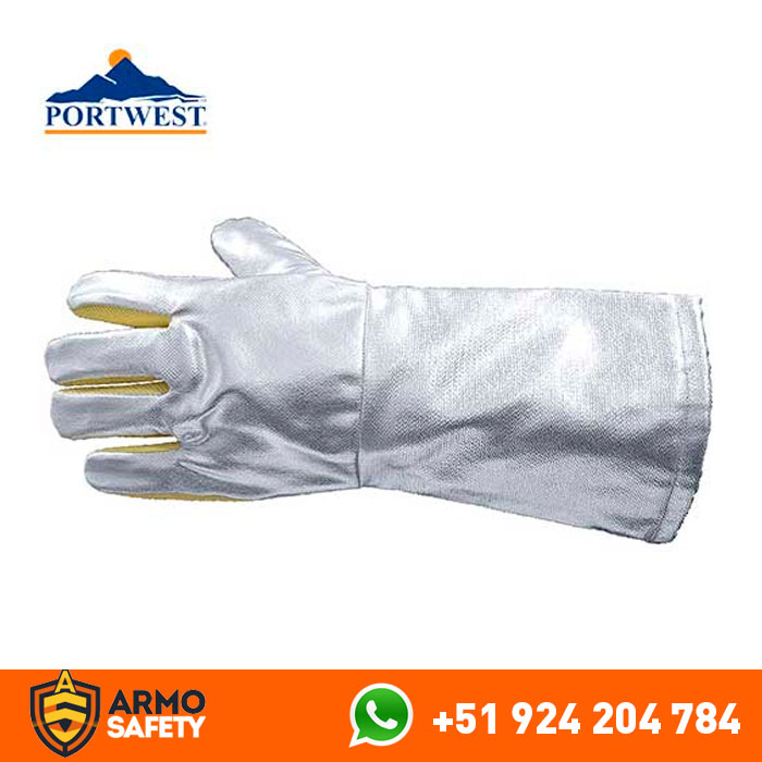 Guante Proximity Approach AM23 Portwest, tiene una longitudes 35cm, reflejan el calor radiante mientras que el forro interior de fieltro de carbono ayuda a reducir la conducción de calor. Las palmas de Para-aramida ofrecen una excelente resistencia contra la abrasión.
