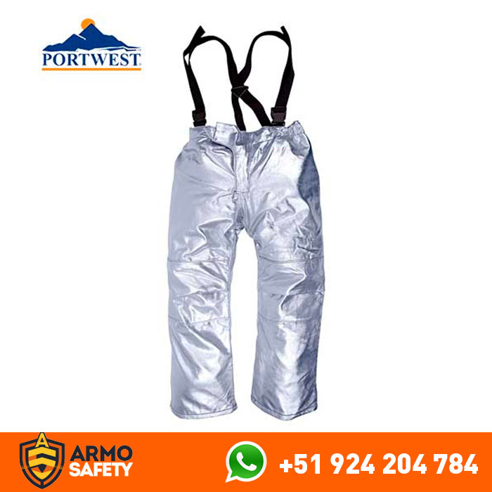 Pantalón Approach AM15 Portwest, para ser usados con la chaqueta AM14, los pantalones aluminizados proporcionan al usuario protección contra calor radiante y altas temperaturas. Sus características incluyen rodillas con forma anatómica, peto trasero y tirantes elásticos ajustables.