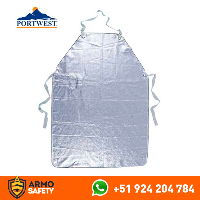 Delantal Approach AM12 Portwest, Perfecto para las necesidades de una fundición, este delantal con peto, protegerá al usuario contra el calor radiante y las salpicaduras de hierro fundido.