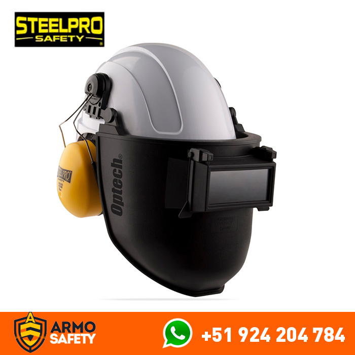 Pantalla para soldar con visor abatible tono 11 adaptable a cascos con ranura estándar de 3mm, para las chispas y radiaciones IR de los procesos de soldadura.